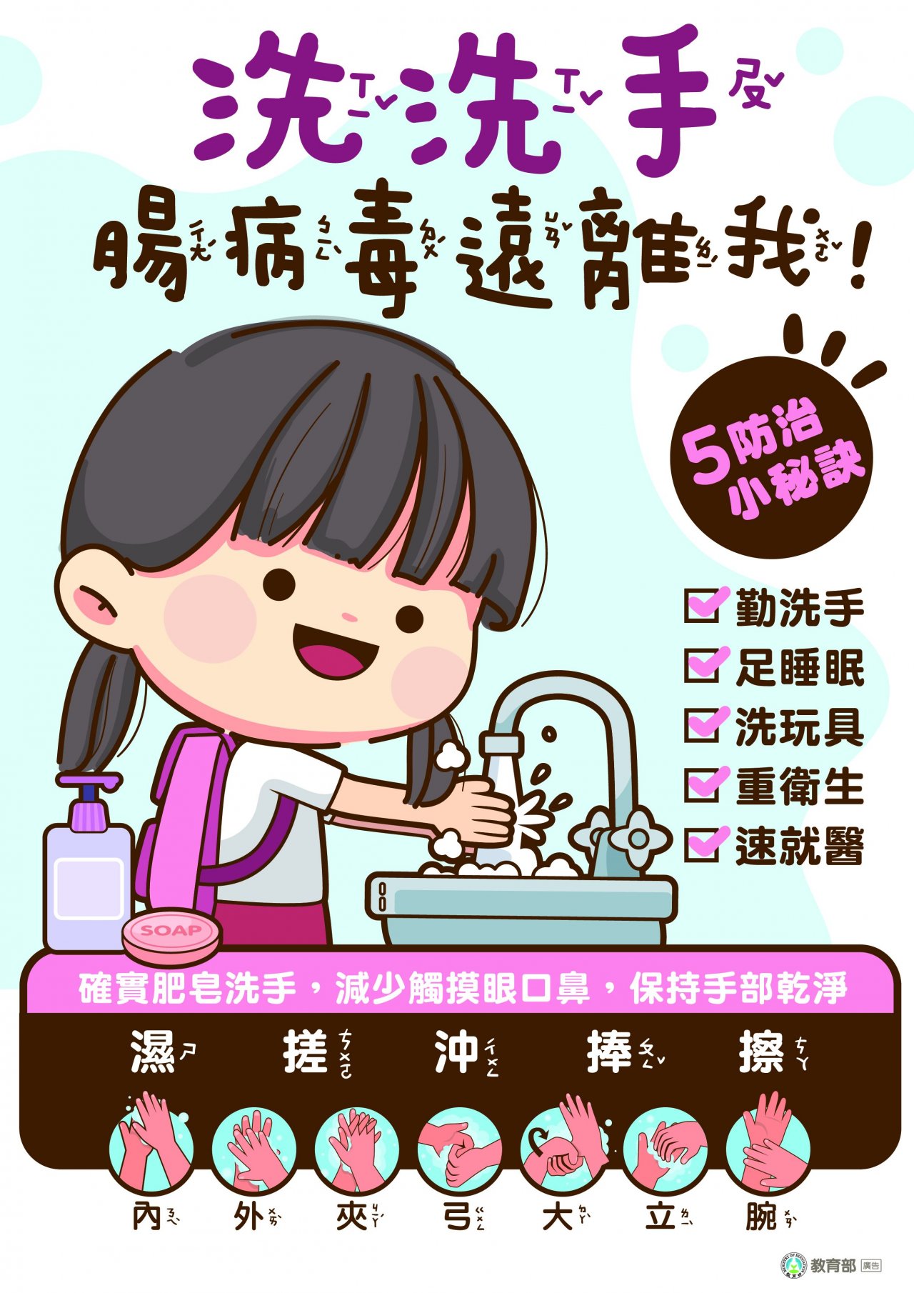 | 主旨: | 為因應近期國內腸病毒疫情有上升趨勢,教育部製作腸病毒宣導海報電子檔1份,請學校及幼兒園參考運用,並加强腸病毒防治工作,請查照。 |